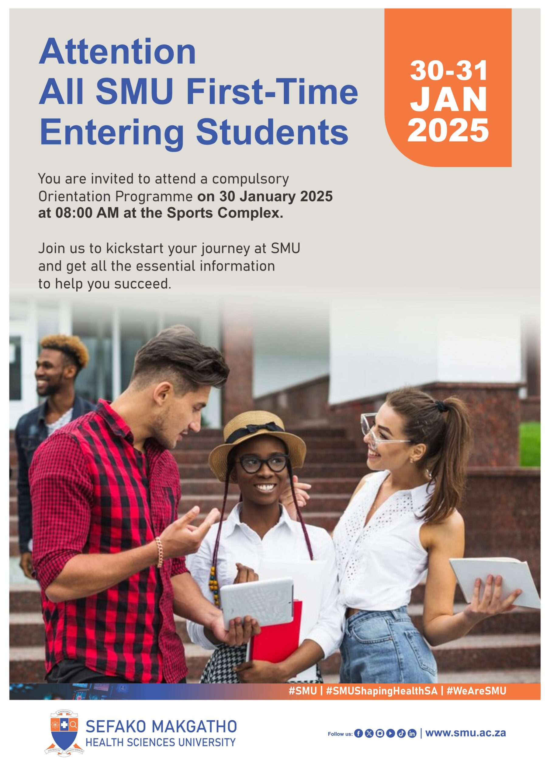 2025 Orientation Days For First Year Students See attached poster for more details + Add to Google Calendar + iCal / Outlook export Date Jan 30 - 31 2025 Expired! Time 8:00 am - 4:00 pm Category General Share this event
