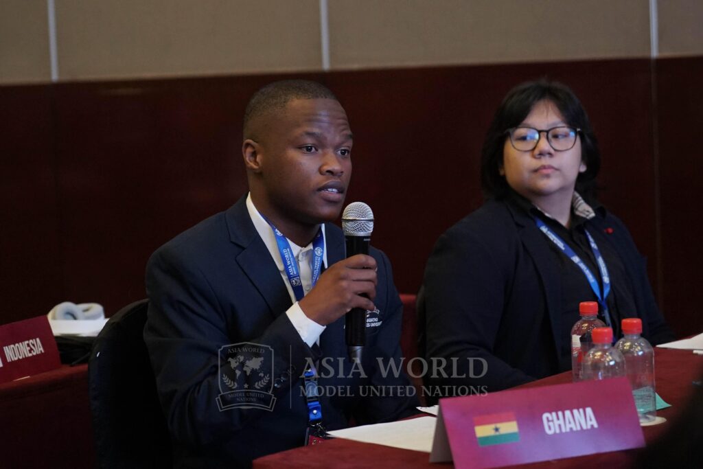 For Moagiemang, participating in AWMUN X was an opportunity to deepen his understanding of global governance and international relations. “My primary motivation was to engage with global issues and develop my negotiation and public speaking skills in a professional setting,” he shares.