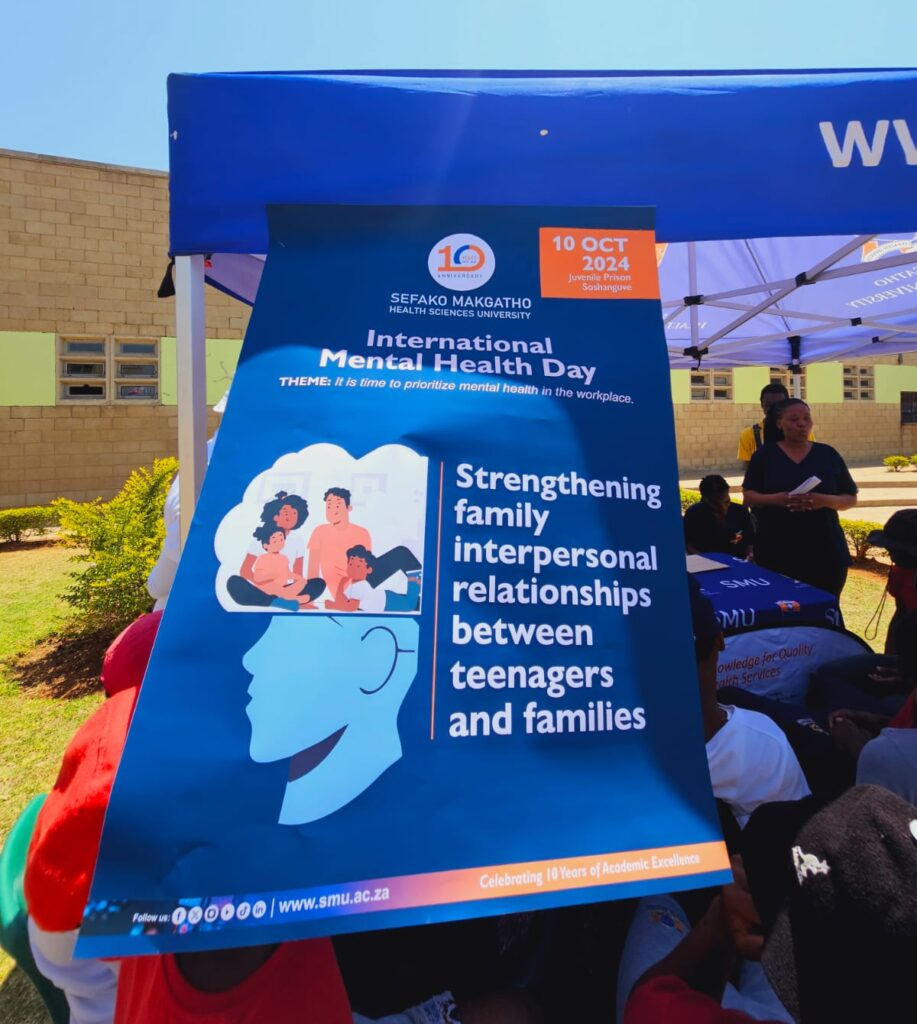 Sefako Makgatho Health Sciences University (SMU) is continually reaffirming its role as a catalyst for societal change. The Nursing Science Department recently commemorated International Mental Health Day with a transformative outreach to the Soshanguve Secure Care Centre (SSCC). By focusing on “Mental Health at Work,” SMU demonstrated its commitment to addressing critical societal challenges, providing support to both vulnerable communities and the professionals who care for them. This initiative attests to SMU’s mission to educate and empower, driving meaningful impact through health-focused solutions.